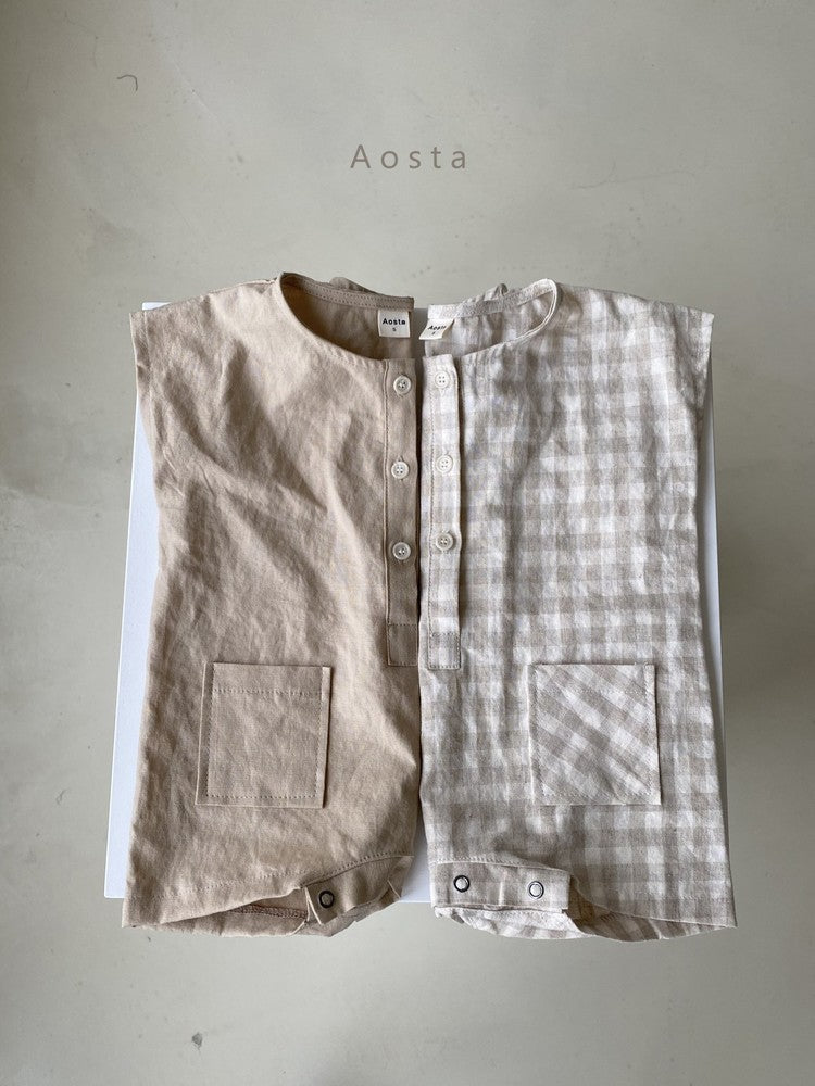 the bodysuit is made from a light linen materiel and has button fasten underneath for easy changing